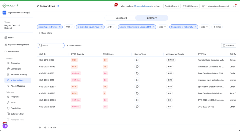 Finding vulnerabilities isn’t the hard part; the challenge is deciding what actually matters and acting fast. Security teams are flooded with CVEs, scores, and alerts, but real risk reduction comes from prioritizing with context, validating scope with full inventory visibility, and investigating vulnerabilities through the lens of exposure. By connecting a contextual Dashboard for rapid, risk-based prioritization with a unified Inventory for validation, ownership, and execution, teams can stop debating severity and start closing the issues that truly increase risk. Tying CVEs to asset criticality, control gaps, exploitability signals, and broader exposure paths shifts the focus from fixing what is easy or newsworthy to eliminating toxic combinations attackers exploit. The outcome is faster triage, stronger alignment with IT and engineering, clearer reporting, and measurable progress in reducing exposure, not just managing vulnerability lists.